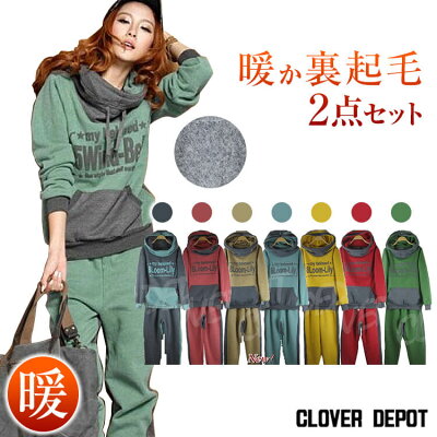 ルーズでかわいい超楽チンパーカー上下セット!もこもこ裏起毛で肌触りはもちろん!軽くてあったかい〜♪
